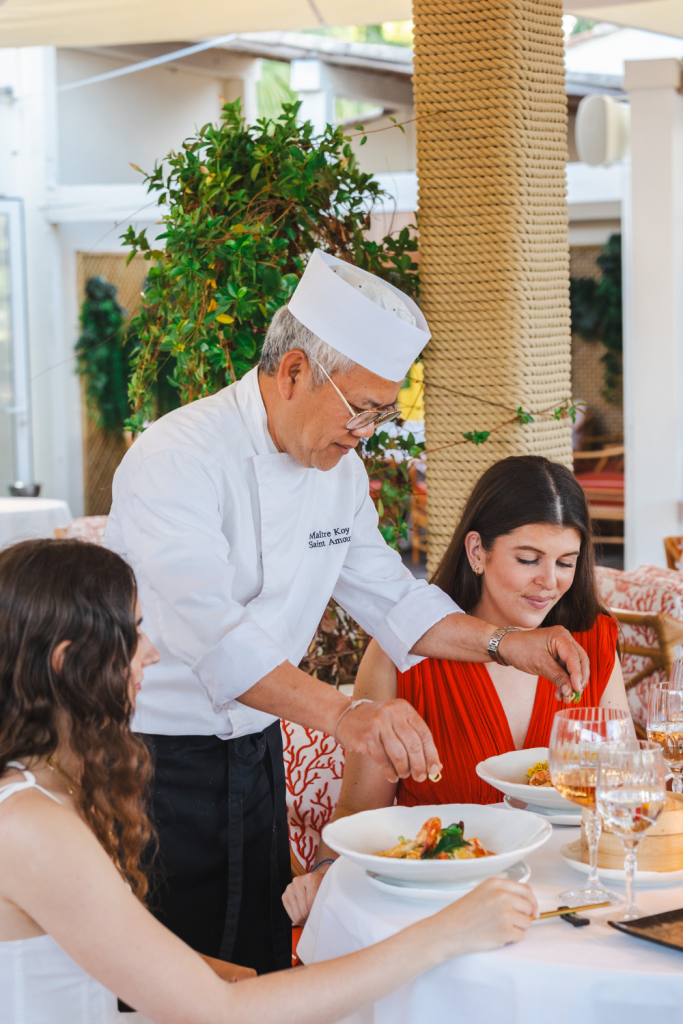 Le cœur gastronomique de l’hôtel bat au rythme du restaurant Saint-Amour. J’ai saisi l’ambiance décontractée du midi, avec ses tables dressées à l’ombre, pour donner envie de s’attabler et de profiter d’une cuisine méditerranéenne de saison. Le soir, j’ai capturé l’atmosphère chic et intimiste de la cuisine fusion du chef Maître Koy, invitant à une expérience culinaire d’exception.